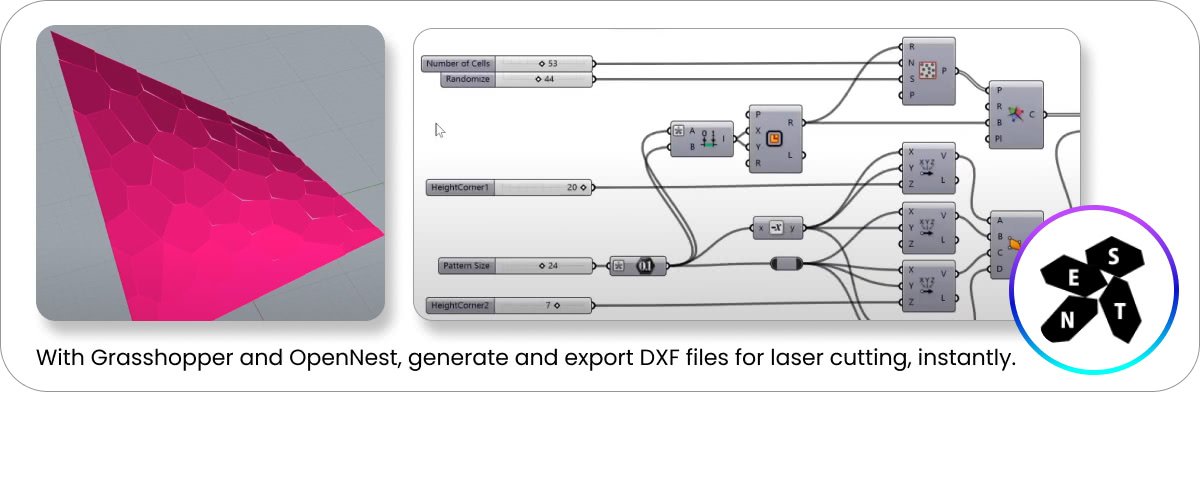 , we can easily create a DXF file of a parametric 3D model of a canopy and with the functionality, we can directly export the data in a DXF file for CNC-laser cutting.