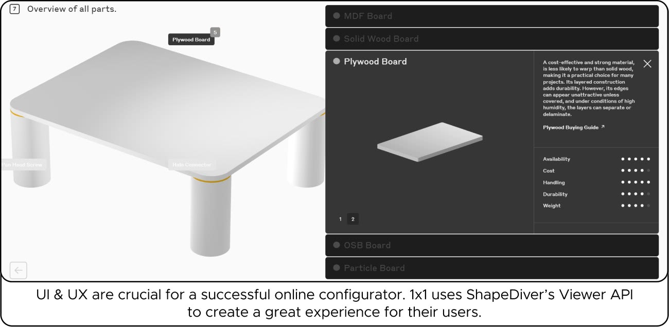 UI and UX are crucial for a successful online configurator, ensuring easy navigation and visualization of products. We focus on making our configurator accessible, user-friendly, and visually appealing to drive adoption and promote our sustainable offerings, empowering users to create custom products confidently.