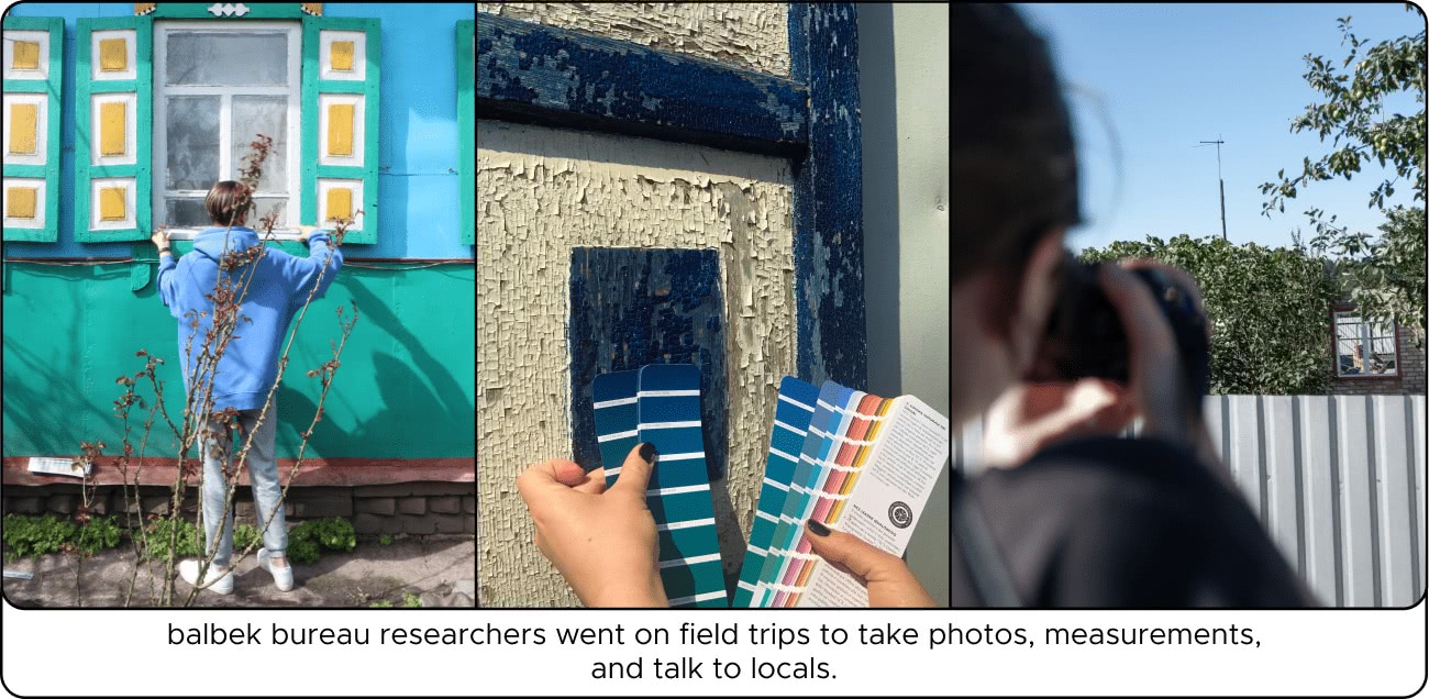First, our researchers would go on field trips to take photos and measurements and talk to locals. At the same time, another group of researchers would make the most out of online resources, such as marketplaces, where they might come across house-for-sale ads containing photos and floor plans. We’re also glad when local experts and academics take the initiative to guide us through the region's historical background. Once all the materials find their way to Google Drive, our architects switch to the Miro board and start the analysis and pattern identification.