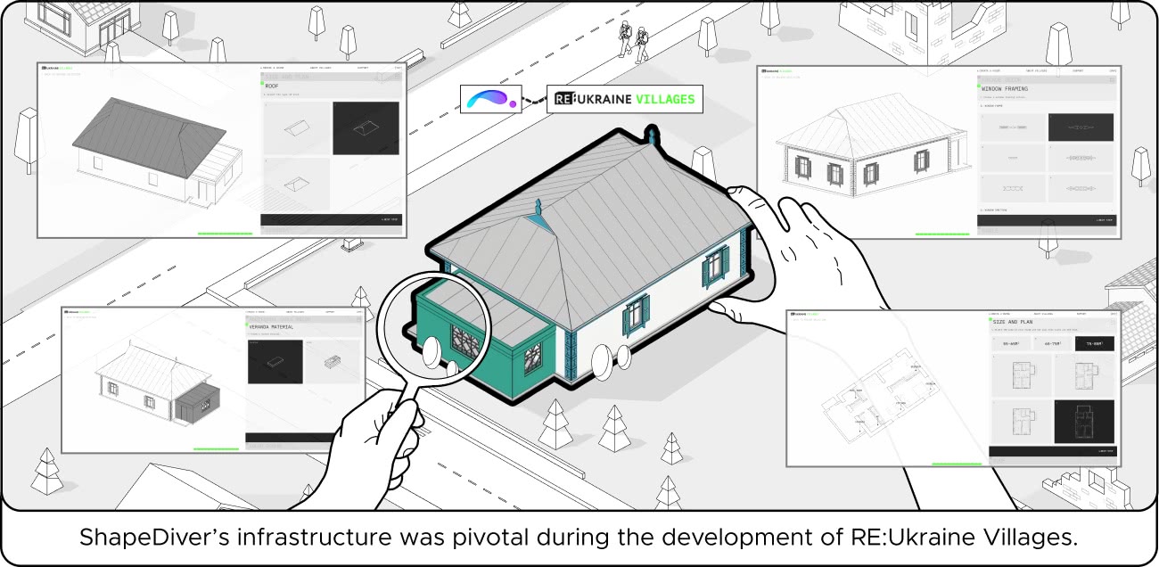 6. What role does ShapeDiver play in the RE:Ukraine Villages project, and how does it enhance the user experience?