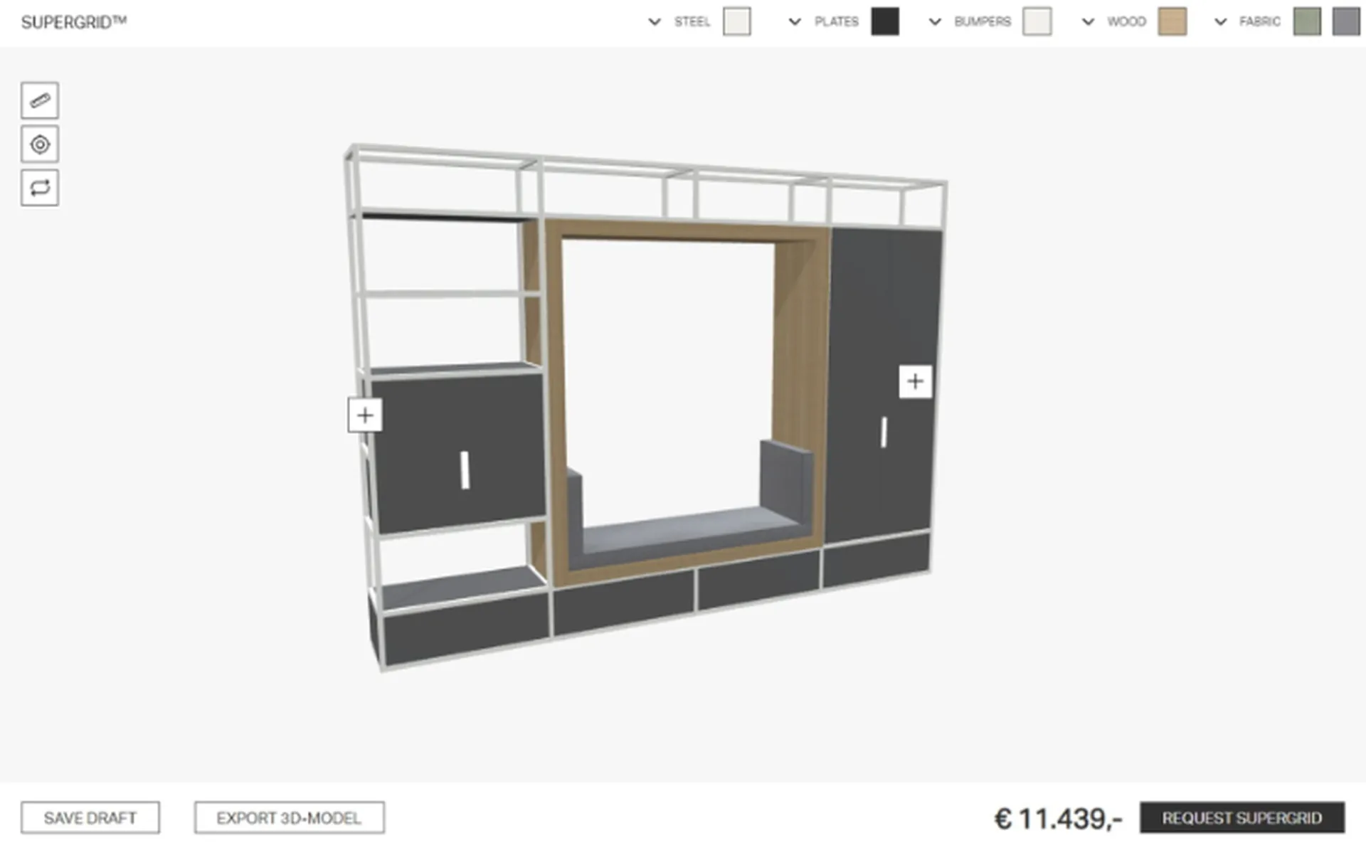 SUPERGRID™ is a modular system for open space architecture and multi-purpose room solutions. With this online configurator, they fully automate multiple parts of the sales funnel.