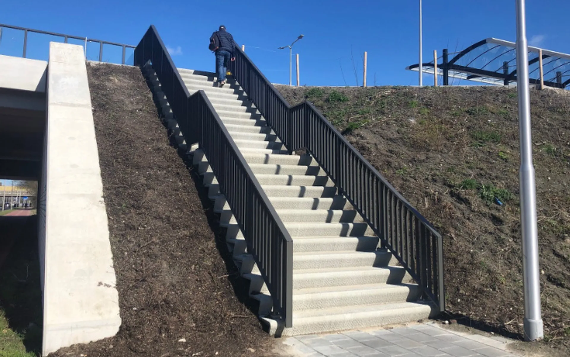 Their new 1m2™ is a staircase that is precision-made in steel and features a unique column-and-handrail design in which the column is slightly slanted.